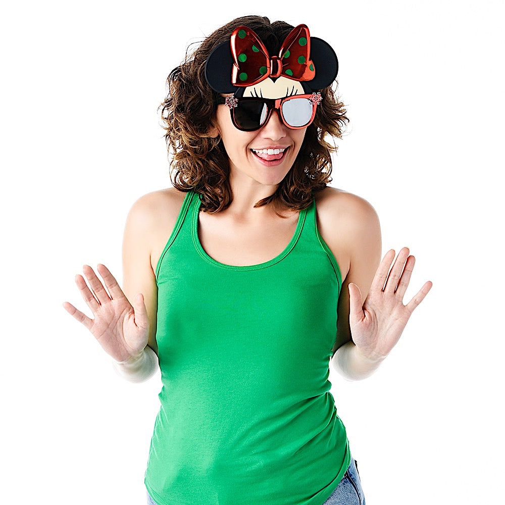 Celebrate the holidays and experience Disney magic with a pair of Holiday Minnie Reflective Sun-Staches. Featuring her iconic mouse ears on a stylish red frame adorned with snowflakes, these stylish shades are perfect for showing off your holiday cheer. With UV protection and impact-resistant lenses these glasses are perfect for all occasions from roasting chestnuts by the fire to having a snowball fight with Mickey and Daisy. These aren't just sunglasses, they're Sun-Staches!